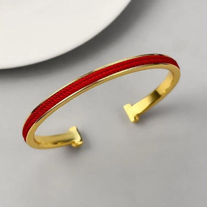 Mix modernity and tradition by placing a red bracelet on top of gold chains. This combination combines cultural significance and modern style.