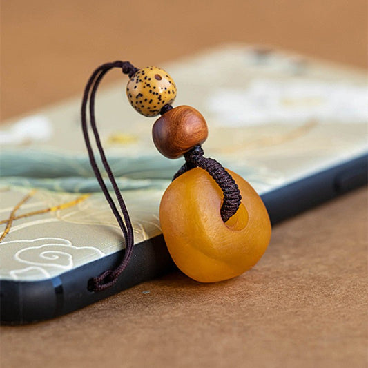 This Natural Hetian Jade Bell Pendant Keychain is a stunning, handcrafted accessory made from high-quality Hetian jade. Designed with a traditional bell shape, it adds a touch of elegance to your daily items like phones, bags, or car keys. The 12mm jade pendant combined with wooden beads and colored cords creates a perfect balance of style and function. Each piece is handmade and unique, making it an ideal gift for loved ones or a special treat for yourself.🔑 Product Features: