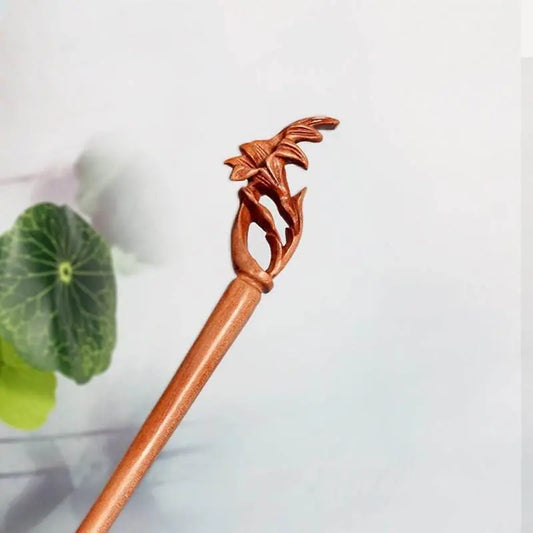 This hairpin belongs to the jewelry category. Crafted from high - quality wood with handmade techniques, it integrates ethnic - style and modern minimalist designs. The hairpin head is exquisitely carved with vintage elements like flowers, featuring smooth and natural lines and clear warm wood texture. Hand - polished for a smooth, non - snagging finish, ensuring stable bun styling. Perfect for matching Hanfu to show vintage charm or adding a minimalist and ethnic touch to daily buns, it’s a versatile hair accessory combining ancient charm and modern fashion, especially for stylish ladies.