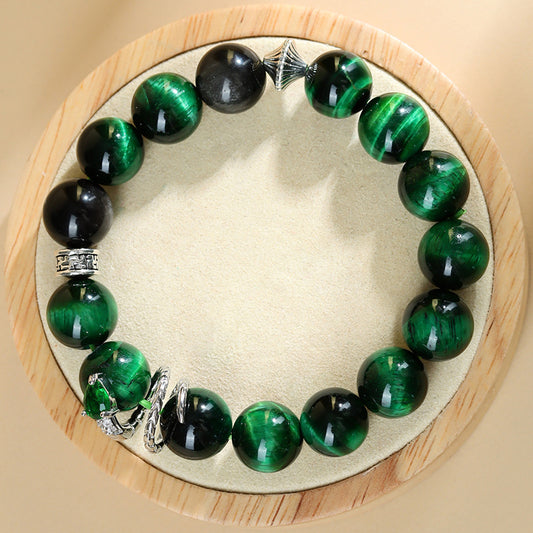 $60.99This Malachite Beaded Bracelet features striking peacock green tiger eye stones with a glossy, polished finish that catches the light beautifully from every angle. Designed in a classic round-bead style, the bracelet is accented with silver-tone decorative spacers and a symbolic snake zodiac element, making it especially meaningful for Year of the Snake wearers.