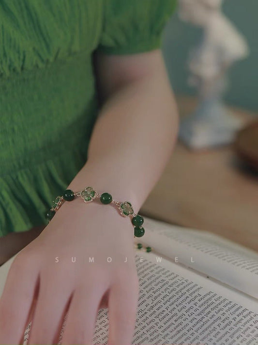 Care Instructions: To preserve the natural sheen of the jade beads, avoid exposing the bracelet to harsh chemicals or moisture. Gently clean with a soft cloth to maintain its glow. 🌸