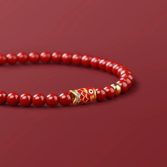 Genuine Cinnabar Bead – One center bead (~8 mm) representing fortune and positive transformation.