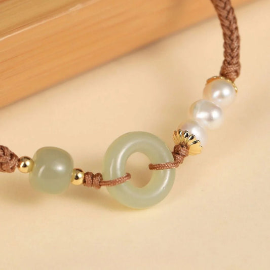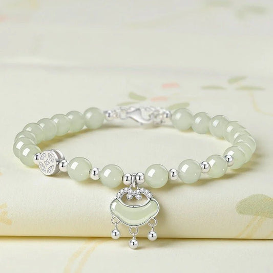 Hetian Jade & Safety Disc: Hetian jade beads and Safety Disc patterns add cultural charm. Gold plated accents elevate style. Perfect for new Chinese trends. 💕