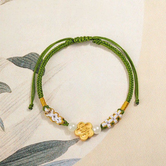 Jade & Peach Blossom Details: Jade beads and peach blossom patterns add cultural charm. Perfect for new Chinese style, matching red string bracelet themes. 💕