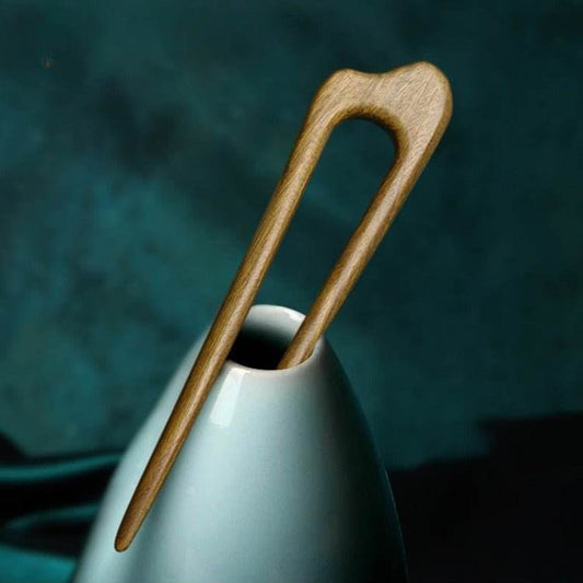 Green Sandalwood U-shaped Double-prong Vintage Hairpin