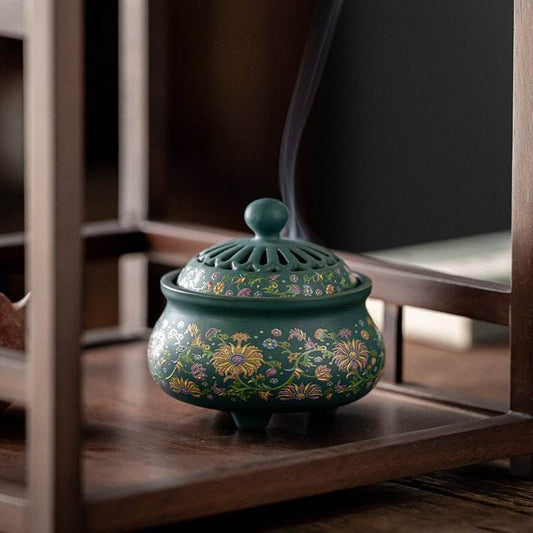 The incense burner is meticulously hand - made by skilled artisans. The large ceramic body is carefully shaped, ensuring a sturdy and aesthetically pleasing form. The application of colour enamels is a painstaking process. Each layer is carefully applied and fired to achieve the rich, vivid colours and intricate patterns. These colour enamels not only enhance the visual appeal of the incense burner but also carry cultural and historical significance, adding depth to your home decor.