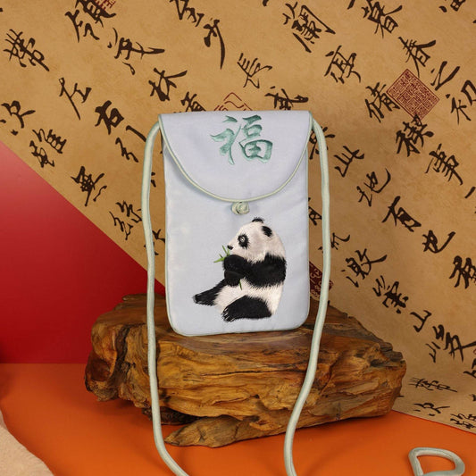 Ancient - style Suzhou - embroidered Phone Bag with Panda and Fu Character Patterns
