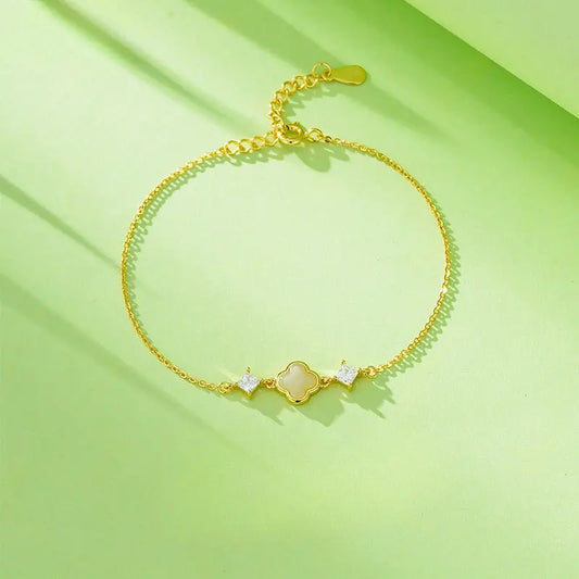 - Name: Gold Plated Jade Bracelet - Hetian Lucky Clover & 925 Silver
