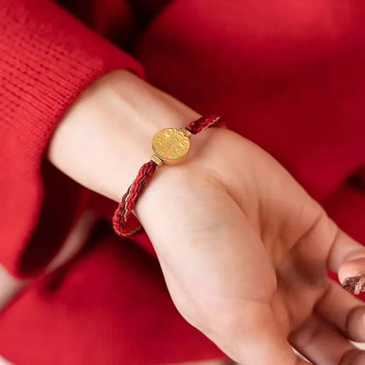 Hand - woven with care, the Vajra Knot symbolizes protection, while the Red String represents good fortune. The God of Wealth charm adds a sacred touch. Lightweight and adjustable for all wrists. ✨
