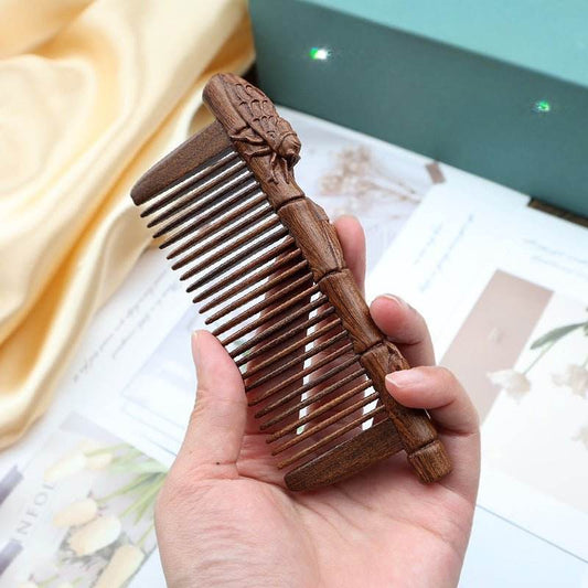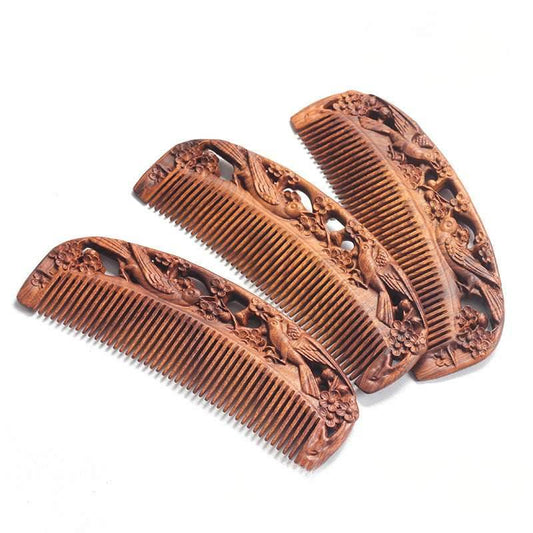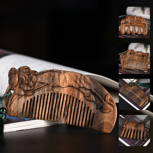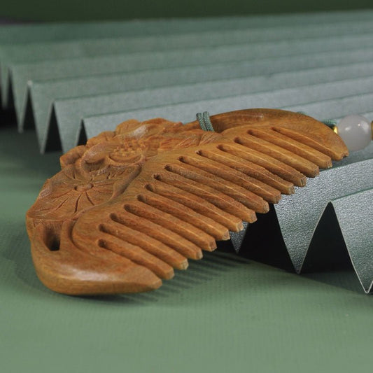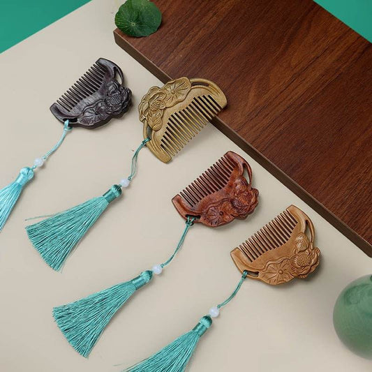 Crafted from sandalwood, peachwood, or boxwood, these combs are prized for their rich aroma and soothing effects. Many come with hand-engraved details, including lucky symbols, calligraphy, or floral art.