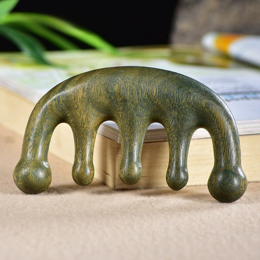 Green Sandalwood Rabbit Comb for Scalp Massage | Natural Wood 5-Prong Comb