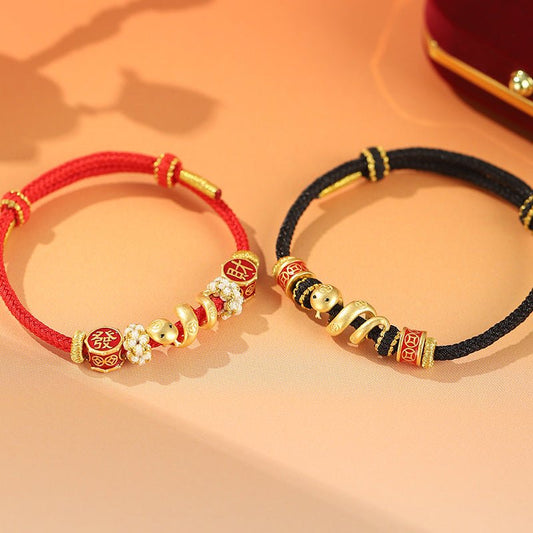 This red string bracelet is not just a fashion statement but a symbol of prosperity and protection, especially ideal for those celebrating their Zodiac Year. The golden beads enhance its elegance, adding a touch of luxury and spirituality. 💫