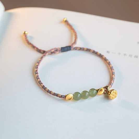 Green Ghost Wealth Bowl Bracelet | Handcrafted Adjustable Red String Bracelet with Natural Stone