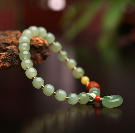 🌿 Natural Elegance: Hetian Jade and South Red Agate are symbols of beauty, protection, and good fortune.