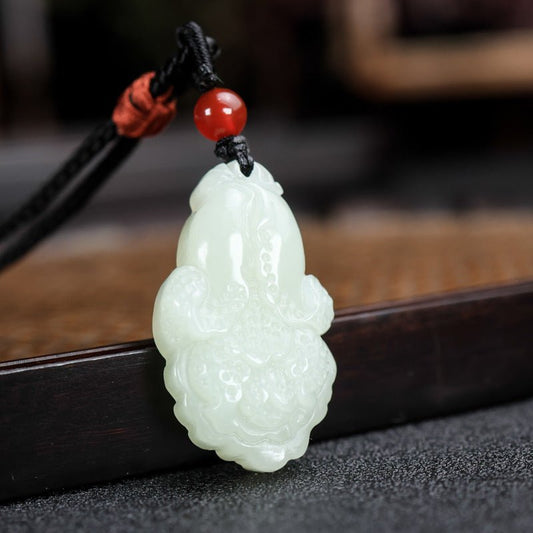 Made from premium Hetian jade, this pendant boasts a smooth, polished finish and a serene white color, giving it a lustrous, translucent appearance. Hetian jade is one of the most revered jades in Chinese culture, known for its superior quality and aesthetic appeal 💎.🌸 Unisex Design: