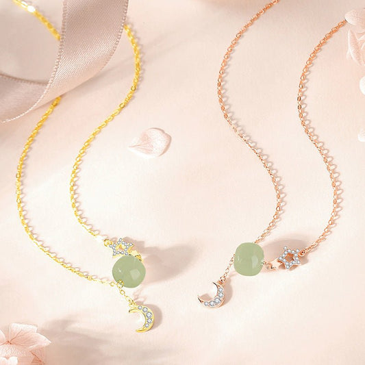 Romantic Jade Stone Pendants - 925 Silver Hetian Moon Lotus Necklace | STAR8S