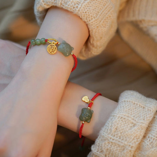 The red string bracelet is endowed with symbolic meanings of love and good fortune. Especially when the red string is tied by a close person, it becomes a bond of affection. Many wear red string bracelets as a symbol of wishing for the other person's good fortune, wealth, and everlasting love.