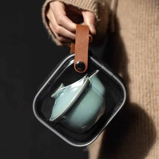 Celadon Ru Kiln Portable Camping Travel Tea Set