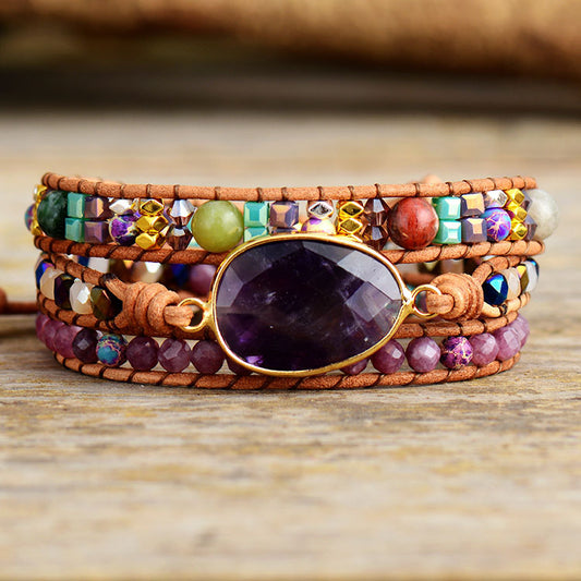 $70.88Amethyst Wrap Bracelet - Handcrafted Leather Adjustable Bracelet for Women