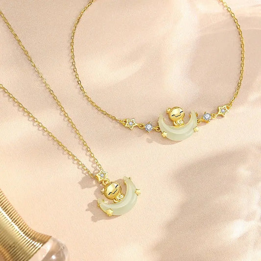 $60.99✨Cute Moon Boat Jade Pendant Bracelet Selling Points