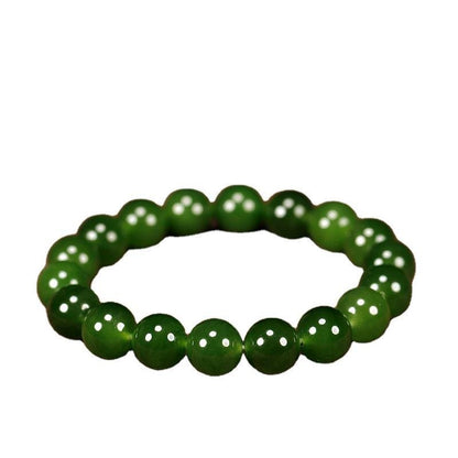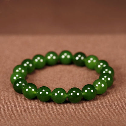 This Handmade Hetian Jade Bracelet is a true beauty, perfect for any occasion! With its simple yet elegant design, it combines both style and meaning. The bracelet features beautiful Spinach Green Jade Beads (10mm in diameter), symbolizing prosperity, protection, and balance. Whether you're dressing up for a formal event or adding a touch of elegance to casual wear, this jade bracelet is the perfect accessory. It's also a wonderful gift choice for friends and loved ones, symbolizing harmony and good fortune.